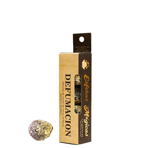 Contenido: 4 Esferas (Mezclas de resina de mirra, incienso, benjuí y sándalo)