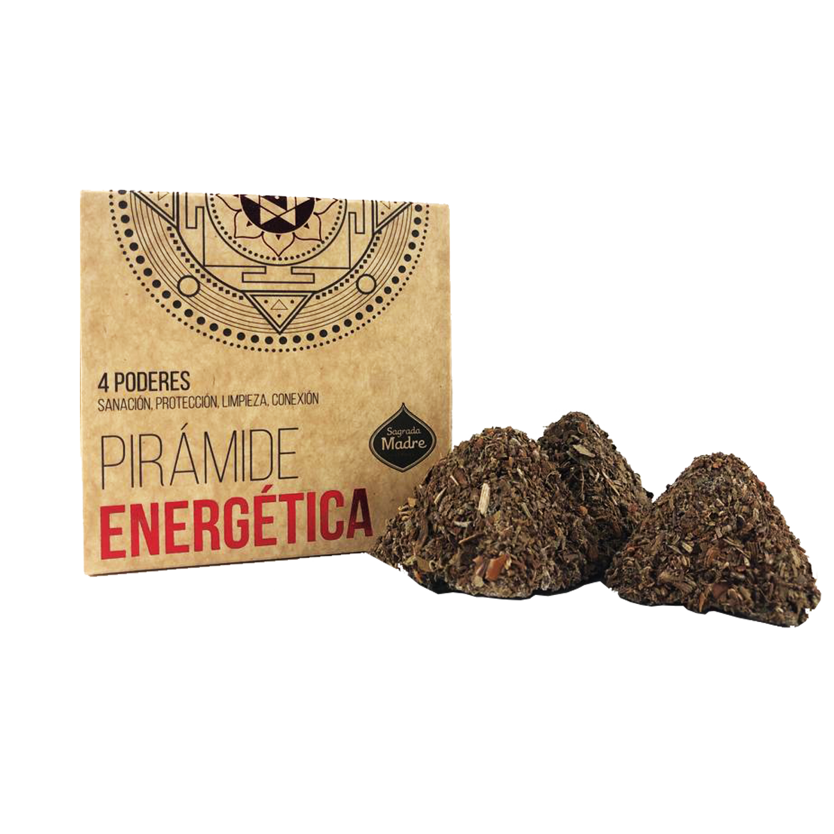 Pirámide Energética para Sahumar: símbolo del fuego, milenaria geometria divina de la raza humana, conector entre el mundo celestial y terrenal, su poder el dol, energía de vida y transformación conductora del poder cósmico sobre el ambiente donde se utilice. Esta Pirámide esta compuesta de 4 hierbas milenarias, laurel (sanación), Eucalipto (Limpieza), Ruda (Protección) y cedro (Conexión).