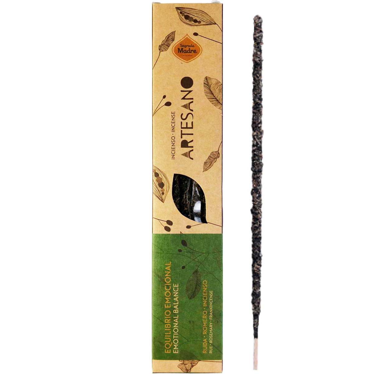 Composición: Resina de incienso, biomasa de frutas, carbón vegetal, aglutinante natural y sal.