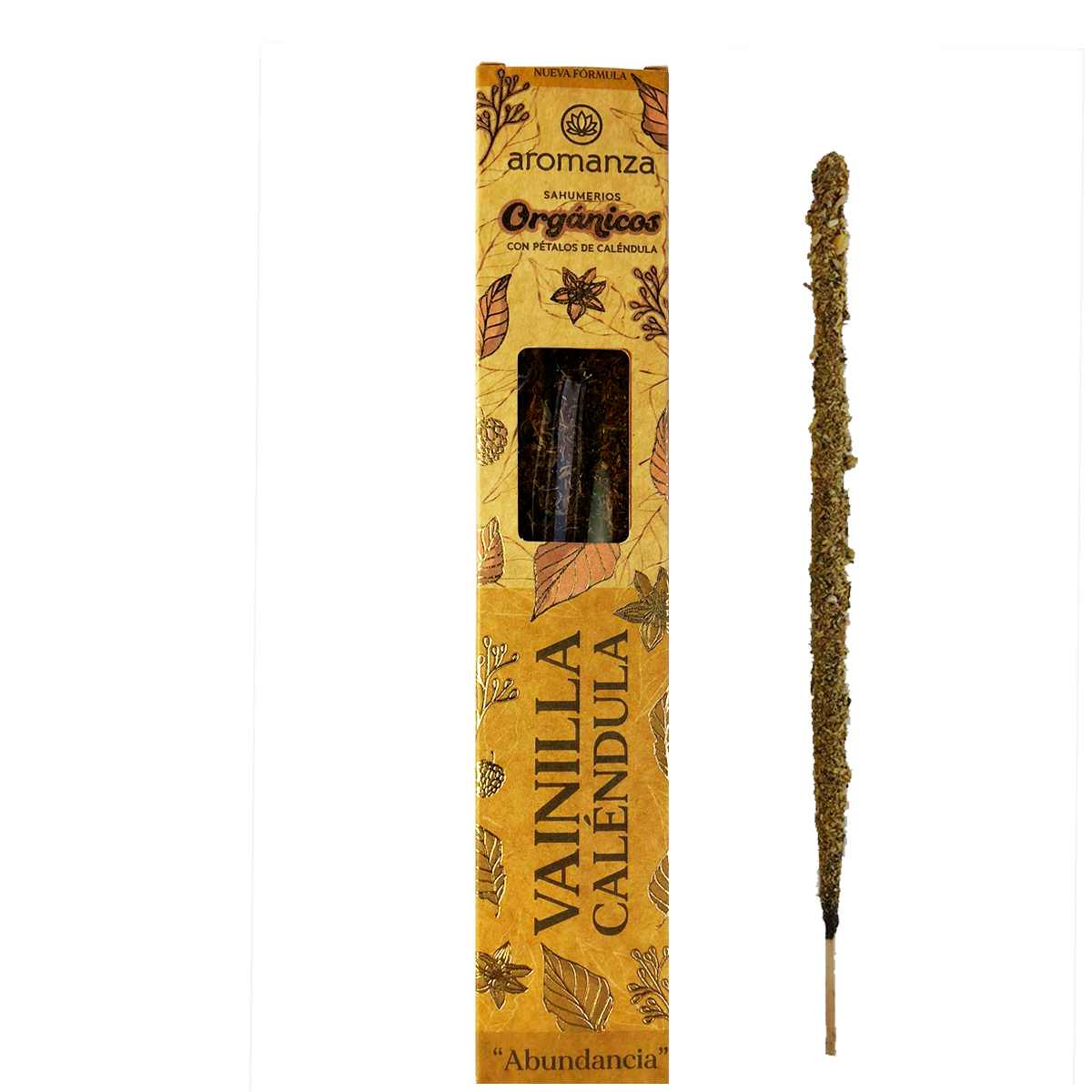Su fragancia evoca la abundancia, llenando el espacio con una sensación de riqueza y bienestar; miesntras que los pétalos de caléndula añaden un toque de belleza natural a cada momento de tranquilidad.